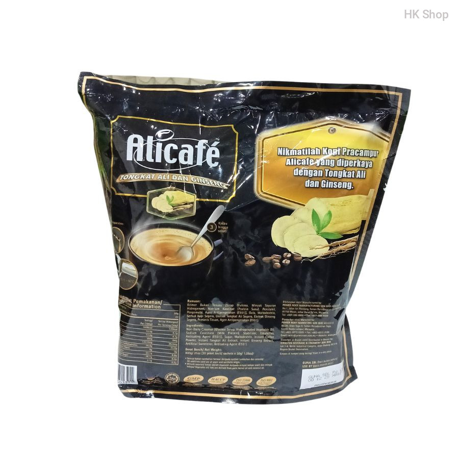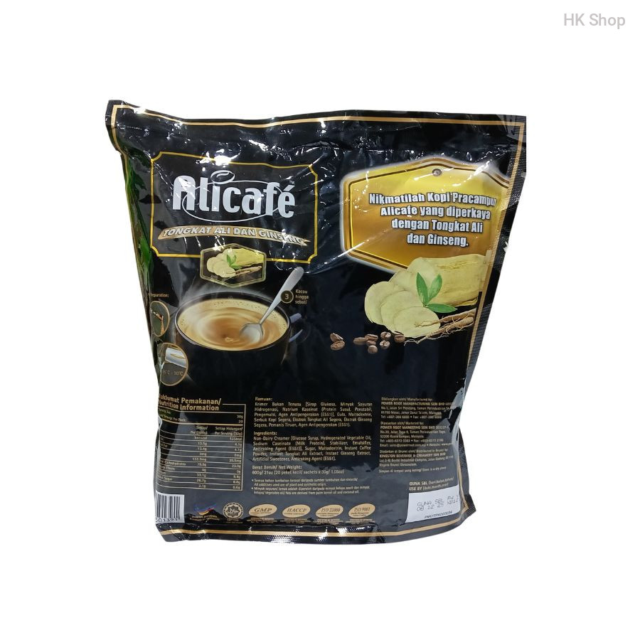 Enjoy the rich and aromatic taste of Alicafe Tongkat Ali and Ginseng Coffee Mix. This 3-in-1 coffee blend combines the robust flavor of premium coffee with the energy-boosting benefits of Tongkat Ali and Ginseng. Perfect for a quick and convenient cup of coffee at home or on the go. Each pack contains 600g, with 20 sachets of 30g each, ensuring freshness and quality in every cup.