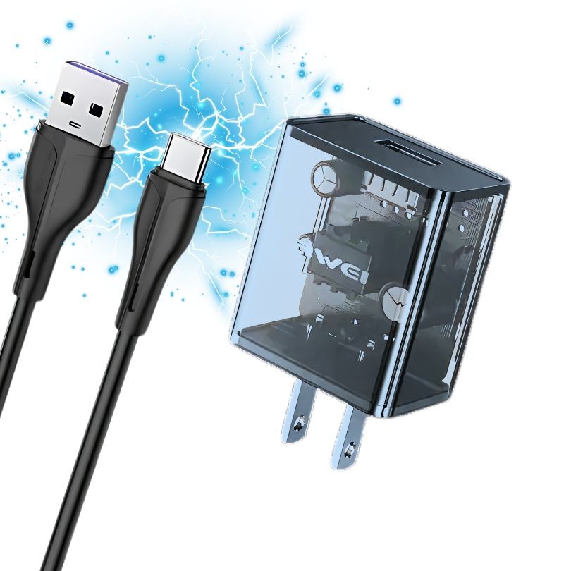 Introducing the AWEI C11T Fast Charging Type-C Transparent Charger with 1M Type C Data Transfer Cable, your essential companion for seamless connectivity and efficient charging. This sleek adapter is designed to provide fast charging capabilities while ensuring reliable data transfer through its high-quality Type-C cable. For 65W fast charging PD adapter, please follow the attached link. Elevate your charging and data transfer experience with the AWEI C11T Fast Charging Type-C Transparent Power Adapter. Whether at home, in the office, or on the go, this versatile accessory ensures you stay connected and powered up whenever you need it.