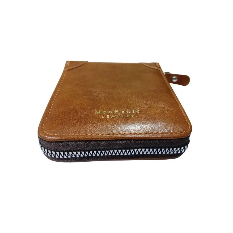 A men's wallet from MENBENSE that has a vintage business style and features a double flip design to hold more bank cards. It can fit up to 7 bank cards, 1 of the slots can also be used as a picture frame. There is a split cash compartment at the top for added practicality. Made from durable and soft high quality PU leather which has been machine stitched with brown fabric on the inside. Available in 3 different colors.
