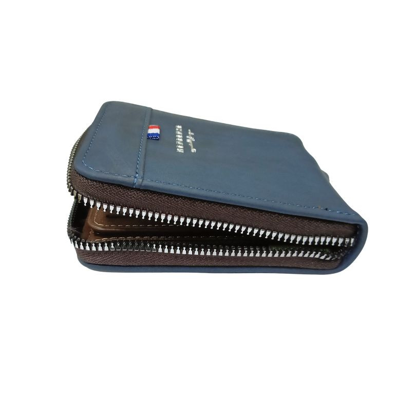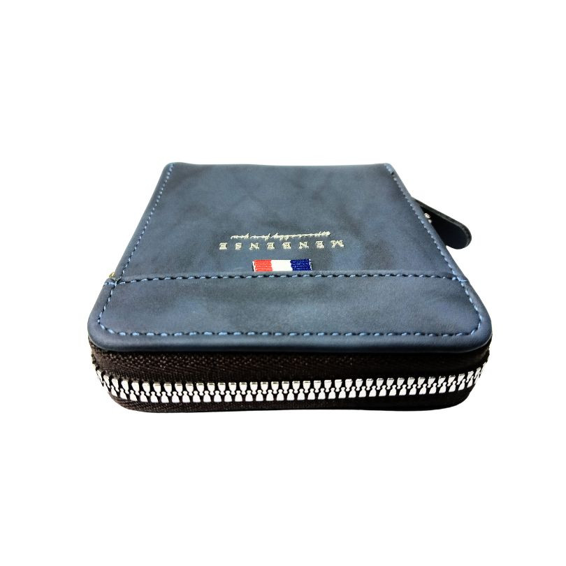 A men's wallet from MENBENSE that has a vintage business style and features a double flip design to hold more bank cards. It can fit up to 7 bank cards, 1 of the slots can also be used as a picture frame. There is a split cash compartment at the top for added practicality. Made from durable and soft high quality PU leather which has been machine stitched with brown fabric on the inside. Available in 3 different colors.