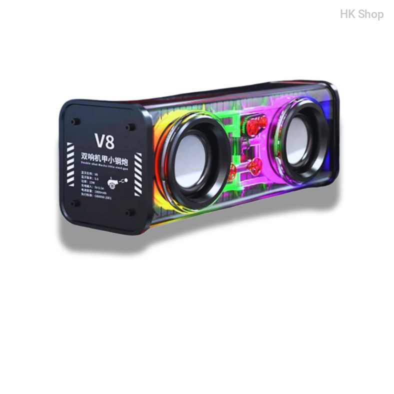 With its transparent casing and RGB lighting effects, the V8 speaker is as much a visual masterpiece as it is an audio powerhouse. Whether you're hosting a party, gaming with friends, or relaxing at home, the dynamic lighting syncs with your music and elevates your atmosphere.